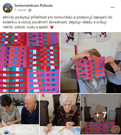 V únoru jsme zažili opět spoustu zajímavých aktivit. Užívali jsme si krásného počasí na pravidelných procházkách. Nezapomněli jsme ani oblíbené slavnostní obědy. Začali jsme s přípravou na sázení rostlinek na naší zahradě. Motoriku jsme zlepšovali díky rozličným domácím pracem, klienty hodně bavilo tvoření panenek z krepového papíru. Více aktuálních fotografií z aktivit domova pro seniory Pohoda najdete na naší stránce na Facebooku >>