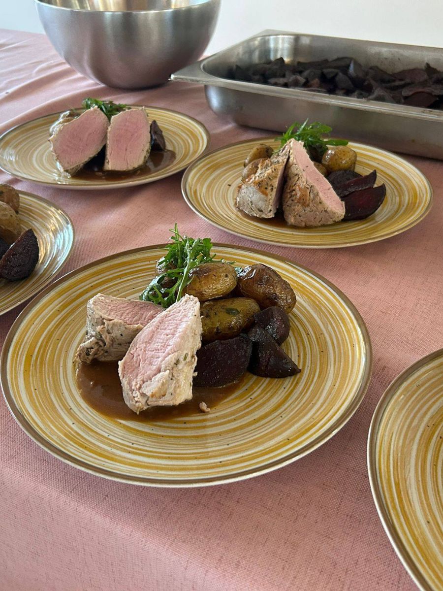 - varianta: Vepřová panenka s pečenou řepou, silnou omáčkou a zámeckými brambory s bylinkami