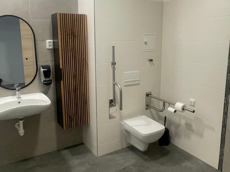 - Sociální zařízení – bezbariérový sprchový kout a WC, K dispozici kvalitní kosmetika v praktických dávkovačích