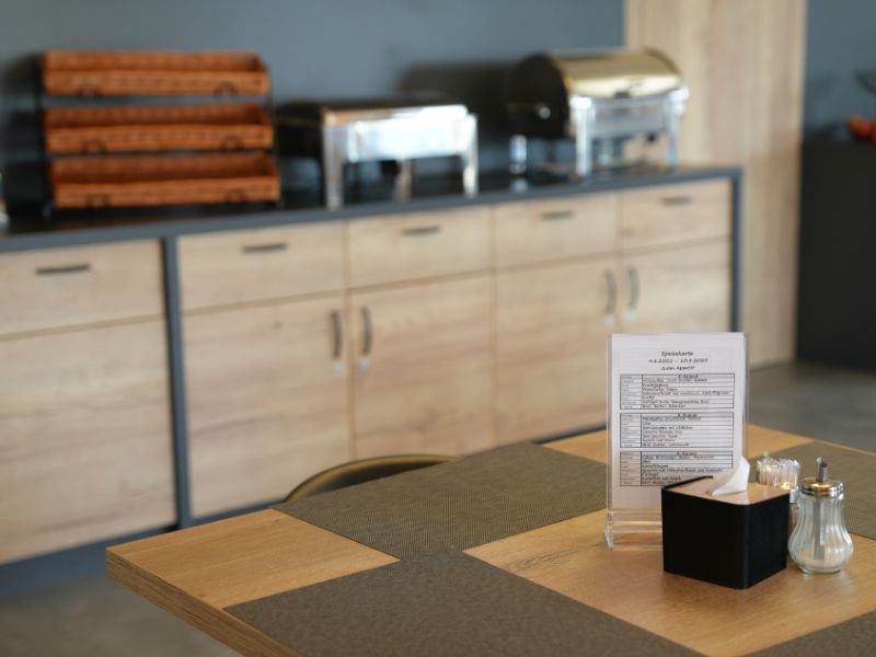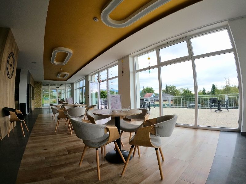 Naše jídelna na budově A je útulné místo, kde se klienti mohou setkávat a vychutnat si jídla připravovaná s láskou. Díky velkým oknům je prostor světlý a vzdušný, s výhledem do klidného okolí, které přispívá k pohodové atmosféře.
