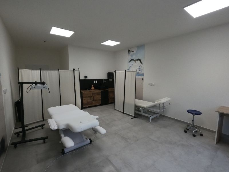 Naše moderně vybavená rehabilitační místnost poskytuje příjemné prostředí, kde se naši klienti mohou věnovat regeneraci a obnově svého zdraví. Nabízíme zde širokou škálu terapeutických procedur, včetně kryoterapie, které pomáhají zmírňovat bolesti, zlepšovat pohyblivost a podporovat celkovou pohodu. Atmosféru místnosti dotváří harmonická výzdoba, která navozuje pocit klidu a uvolnění.