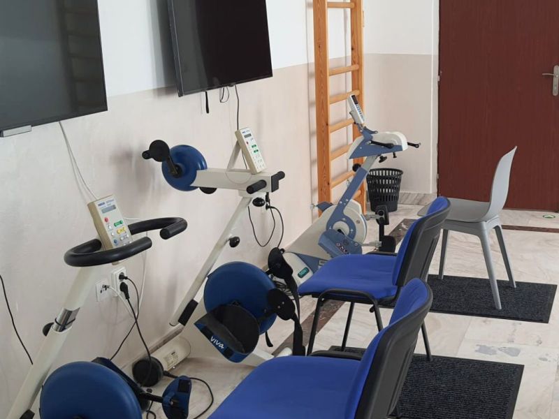 Tělocvična v budově A je navržena s ohledem na pohodlí a potřeby našich klientů. Je vybavena rehabilitačními přístroji, motomedy a dalšími pomůckami, které podporují jak fyzickou kondici, tak proces rehabilitace. Součástí vybavení jsou také žebřiny, které přispívají k posilování a udržování flexibility.