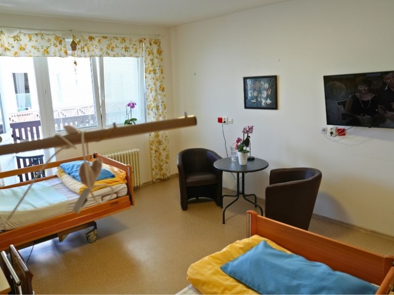 - Všechny pokoje jsou vybavené polohovatelnými lůžky a signalizační technikou pro okamžité přivolání odborného ošetřovatelského týmu