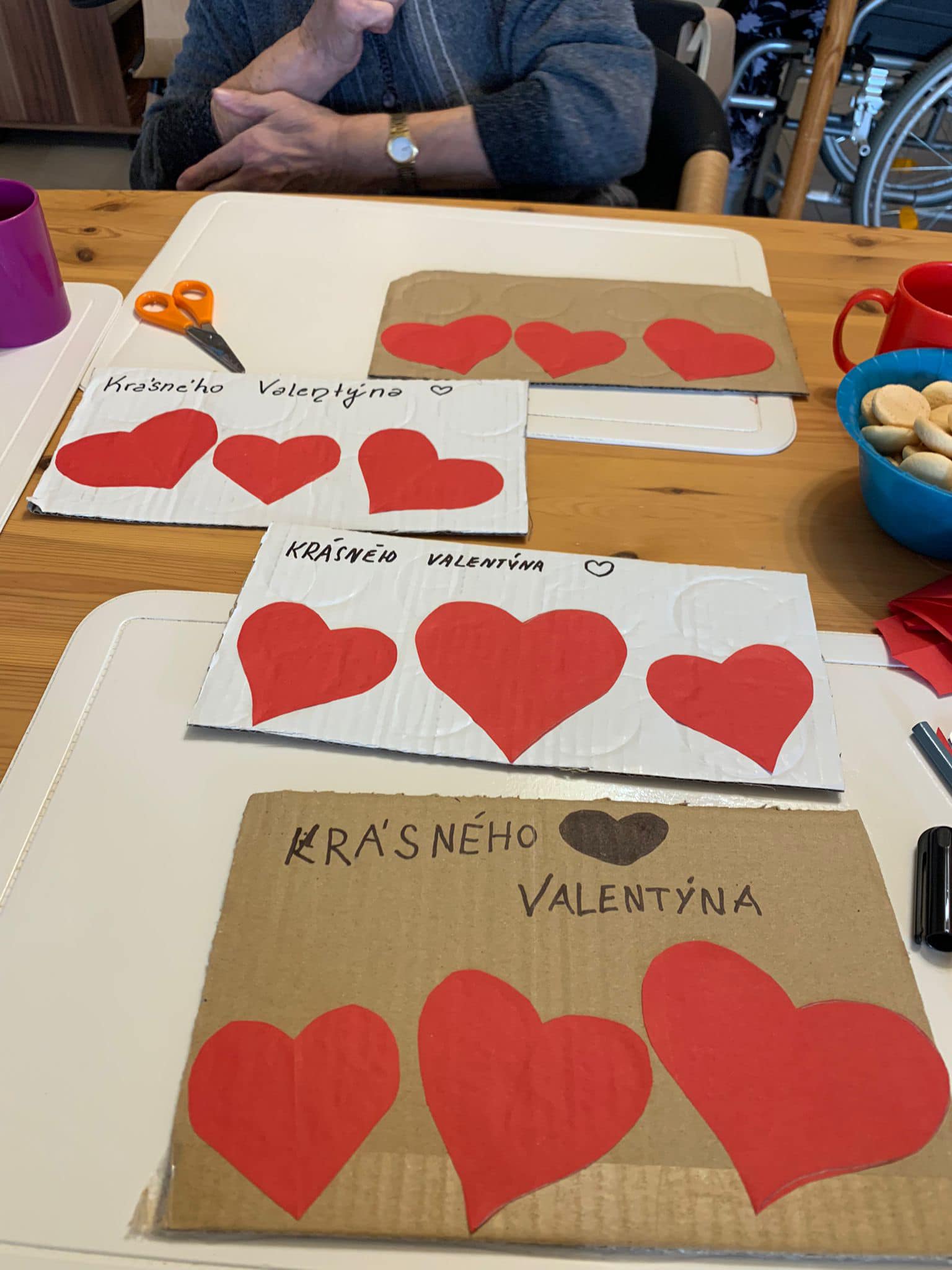 Vítáme vás v naší malé dílničce lásky, kde si naši obyvatelé v domově pro seniory užívají tvůrčí hromádky radosti! Tentokrát se pustíme do výroby Valentýnských přáníček.